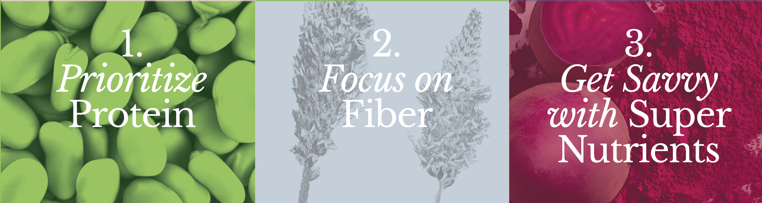 - Prioritize Protein. To maintain muscle mass, metabolism, blood sugar balance, and cognitive function.